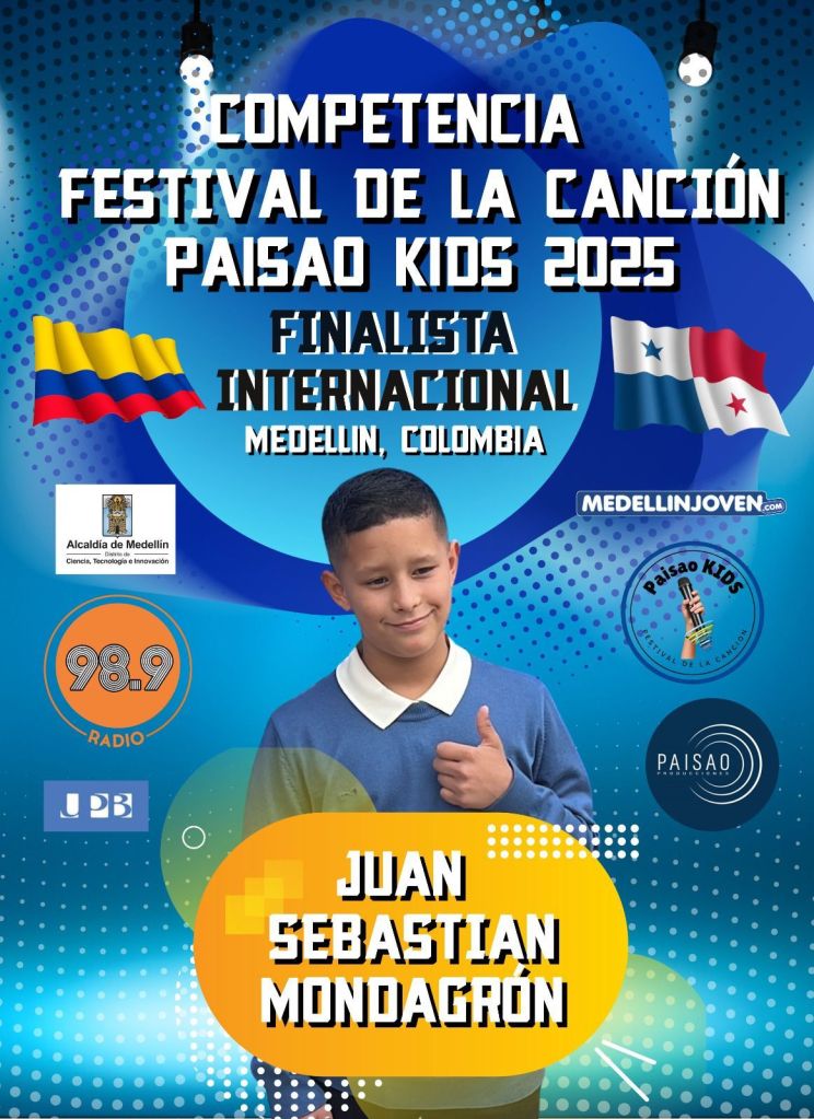 El joven talento chiricano Juan Sebastián Mondragón ha sido seleccionado como finalista internacional del Festival de la Canción Paisao Kids 2025, uno de los eventos más reconocidos de la música infantil y juvenil en Latinoamérica.